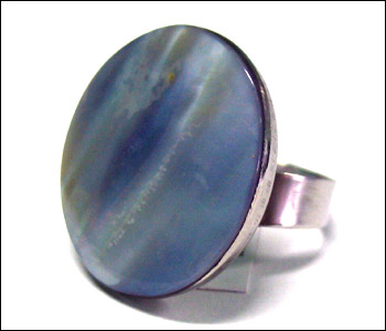 Description: Metal ring round 29mm in chamber nautilus dyed turq. Blue